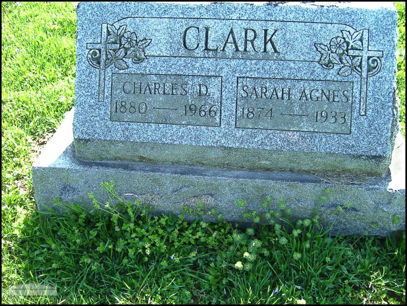 - Photo image of the headstone of Charles and Sarah Clark in Rushtown Cemetery located in Scioto County.