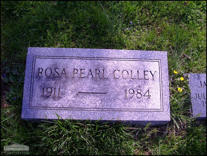 - Photo image of the headstone of Rosa Pearl Colley in Rushtown Cemetery located in Scioto County.