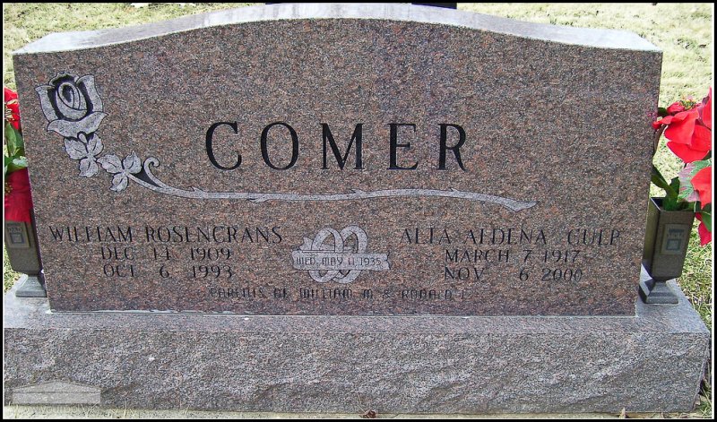 - Photo image of the headstone of William and Alia Comer in Scioto Burial Park located in Scioto County.