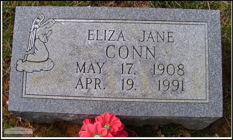 - Photo image of the headstone of Eliza Jane Conn in Village Cemetery located in Adams County. This cemetery is also known as Pumpkin Ridge Cemetery.