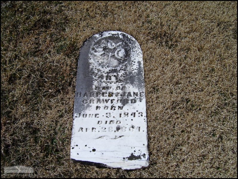 - Photo image of the headstone of Mary J. Crawford in Village Cemetery located in Adams County. This cemetery is also known as Pumpkin Ridge Cemetery.