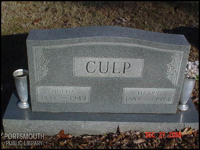 - Photo image of the headstone of Harry and Hulda Culp in Rockwell Cemetery located in Scioto County.