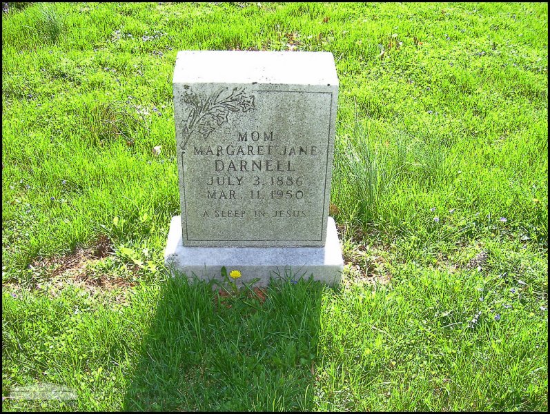 - Photo image of the headstone of Margaret Darnell in Rushtown Cemetery located in Scioto County.