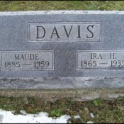 - Photo image of the headstone of Ira and Maude Davis in Locust Grove Cemetery located in Adams County.