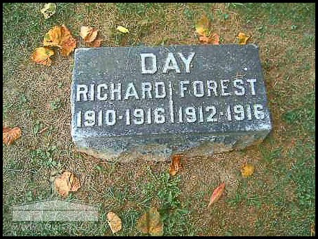 - Photo image of the headstone of Richard and Forest Day in Confidence Cemetery located in Brown County.