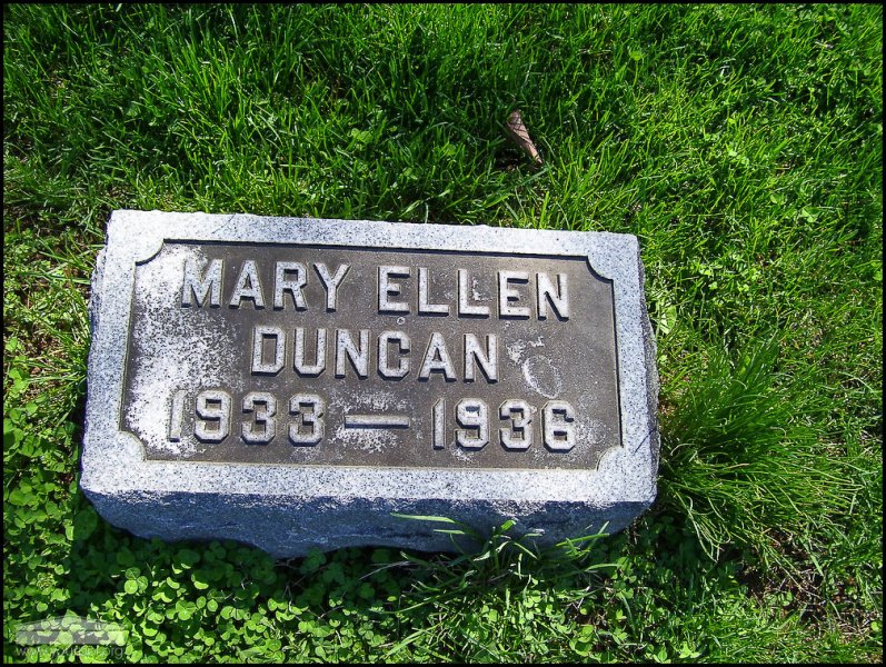 - Photo image of the headstone of Mary Ellen Duncan in Rushtown Cemetery located in Scioto County.