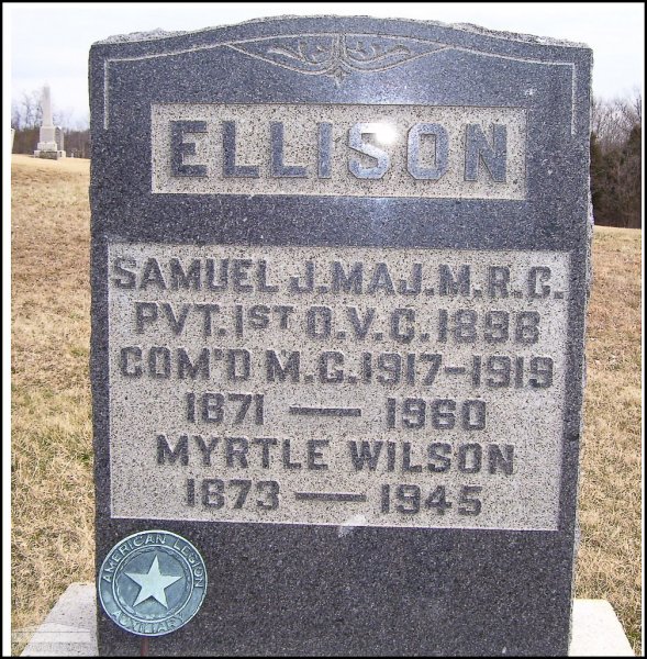 - Photo image of the headstone of Samuel and Myrtle Ellison in Village Cemetery. This cemetery is also known as Pumpkin Ridge Cemetery.