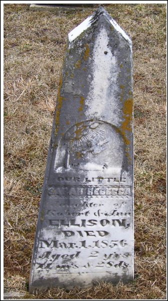 - Photo image of the headstone of Sarah Rebecca Ellison in Village Cemetery located in Adams County. This cemetery is also known as Pumpkin Ridge Cemetery.