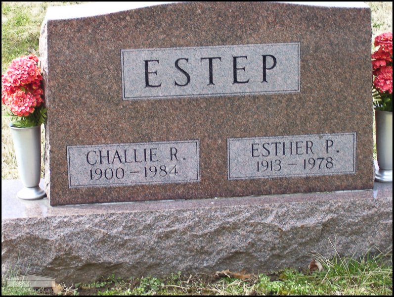 - Photo image of the headstone of Challie and Esther Estep in Scioto Burial Park located in Scioto County.
