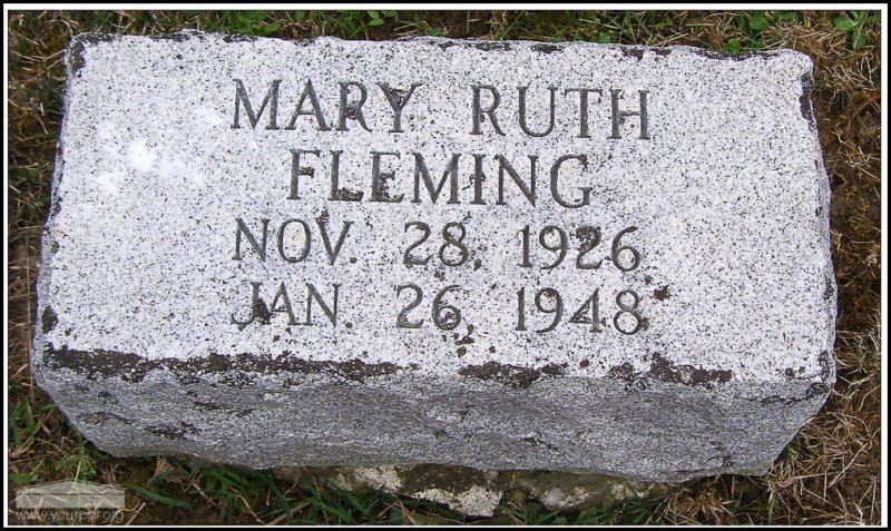 - Photo image of the headstone of Mary Ruth Fleming in Jacktown Cemetery located in Adams County. This cemetery is also known as Jacksonville Cemetery.