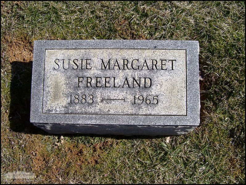 - Photo image of the headstone of Susie Freeland in Village Cemetery located in Adams County. This cemetery is also known as Pumpkin Ridge Cemetery