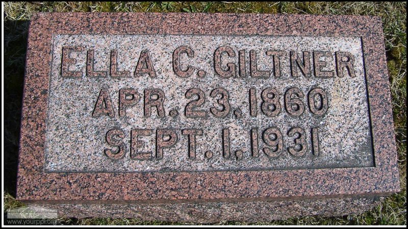 - Photo image of the headstone of Ella C. Giltner in Prospect Cemetery located in Highland County.
