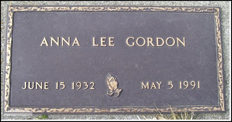 - Photo image of the headstone of Anna Gordon in Scioto Burial Park located in Scioto County.