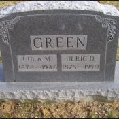 - Photo image of the headstone of Ulric and Lula Green in Evergreen Cemetery located in Adams County.