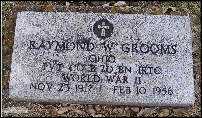 - Photo mage of the headstone of Raymond W. Grooms in the West Union I. O. O. F. Cemetery located in Adams County.