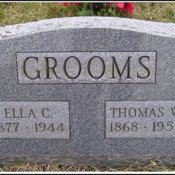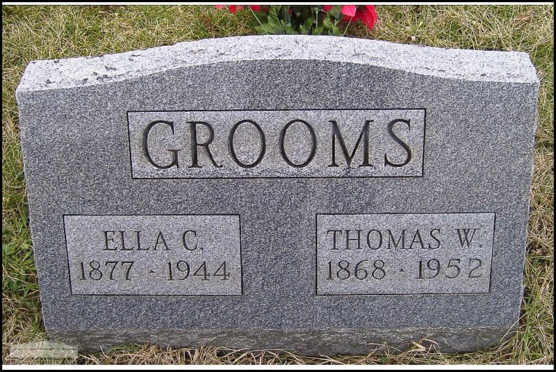 - Photo image of the headstone of Thomas and Ella Grooms in the West Union I. O. O. F. Cemetery located in Adams County.