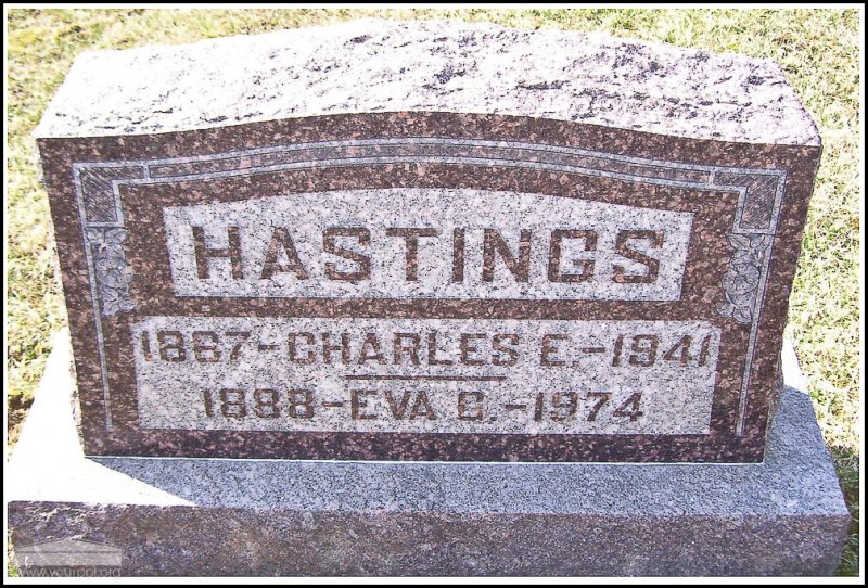 - Photo image of the headstone of Charles and Eva Hastings in Prospect Cemetery located in Highland County.