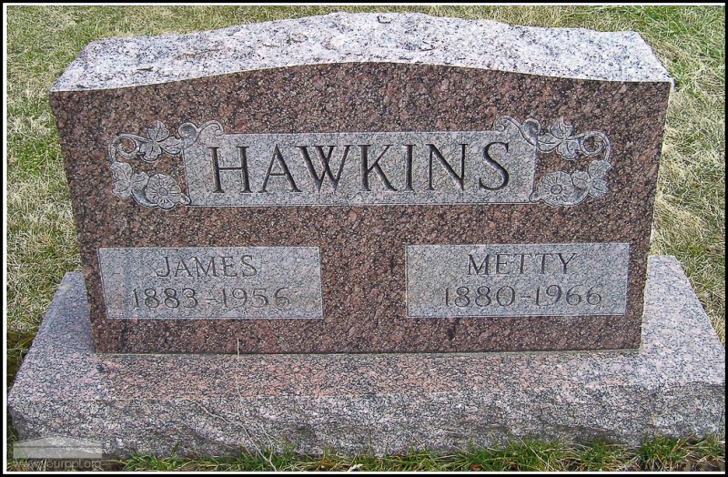 - Photo image of the headstone of James and Metty Hawkins in Scioto Burial Park located in Scioto County.