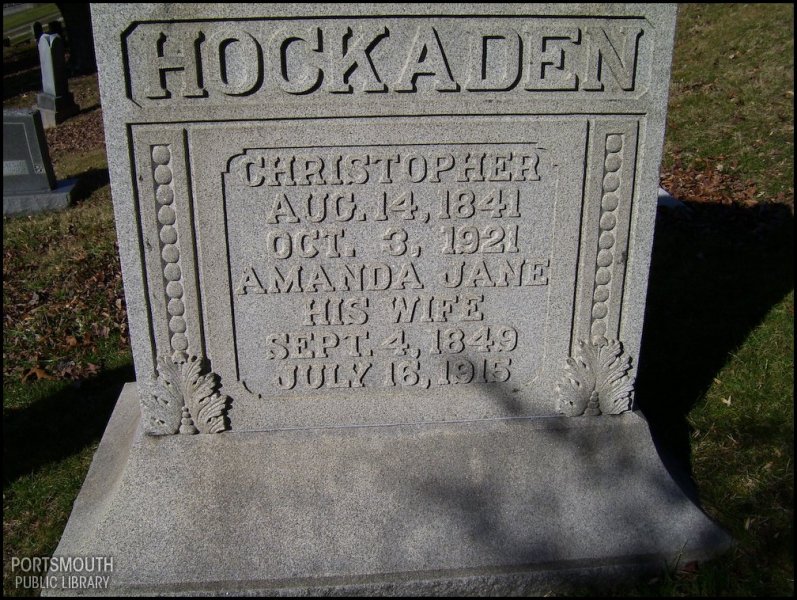 - Photo image of the headstone of Christopher and Amanda Hockaden in Otway Cemetery located in Scioto County.