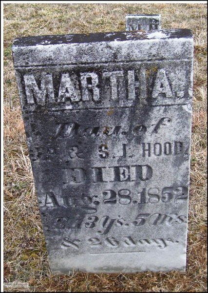 - Photo image of the headstone of Martha Hood in Village Cemetery located in Adams County. This cemetery is also known as Pumpkin Ridge Cemetery.