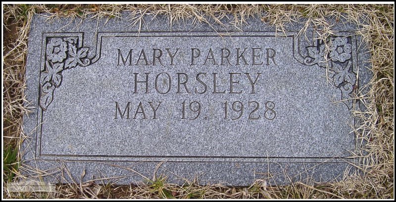 - Photo image of the headstone of Mary Horsley in Scioto Burial Park located in Scioto County.