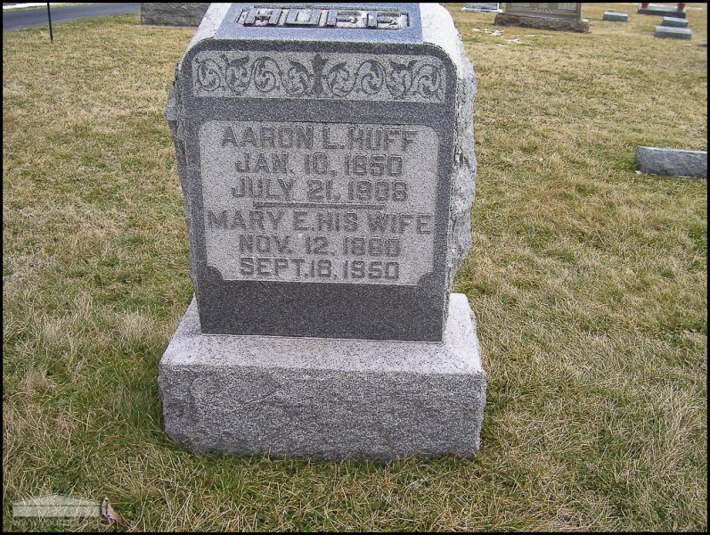 - Photo image of the headstone of Aaron and Mary Huff in Sugartree Ridge Cemetery located in Highland County.