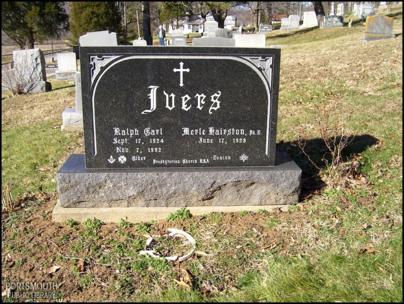 - Photo image of the headstone of Ralph and Merle Ivers in Otway Cemetery located in Scioto County.
