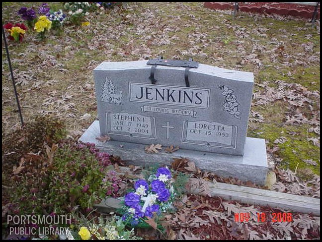- Photo image of the headstone of Stephen and Loretta Jenkins in Big Run Cemetery located in Scioto County.