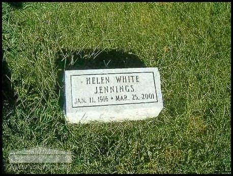 - Photo image of the headstone of Helen Jennings in Confidence Cemetery located in Brown County.