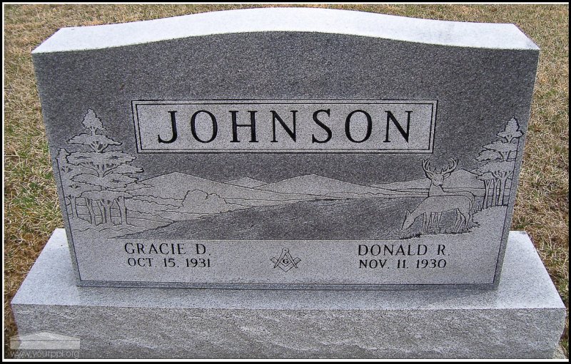 - Photo image of the headstone of Donald and Gracie Johnson in Jacktown Cemetery located in Adams County. This cemetery is also known as Jacksonville Cemetery.