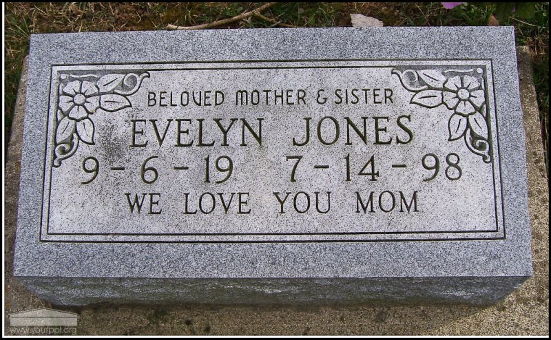 - Photo image of the headstone of Evelyn Jones in Jacktown Cemetery located in Adams County. This cemetery is also known as Jacksonville Cemetery.