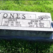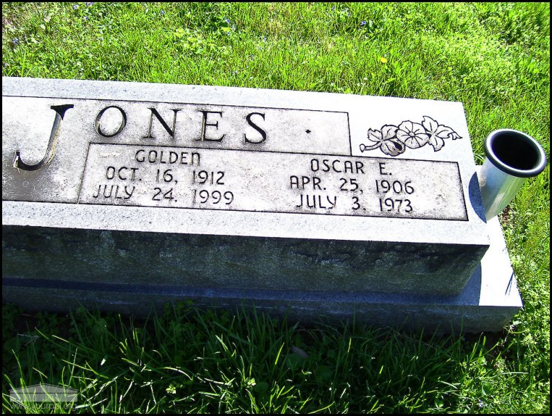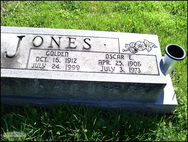 - Photo image of the headstone of Oscar and Golden Jones in Rushtown Cemetery located in Scioto County.