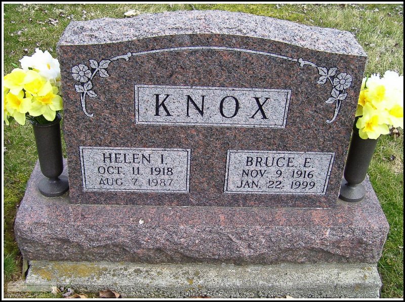 - Photo image of the headstone of Helen and Bruce Knox in Village Cemetery located in Adams County. This cemetery is also known as Pumpkin Ridge Cemetery.