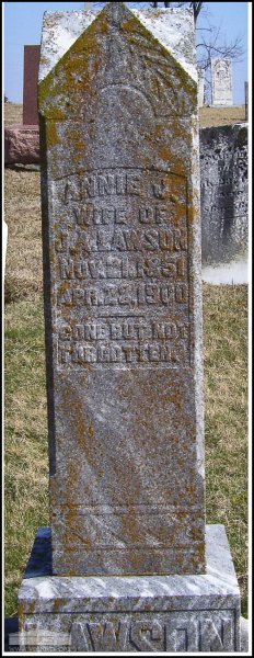 - Photo image of the headstone of Annie J. Lawson in Prospect Cemetery located in Highland County.
