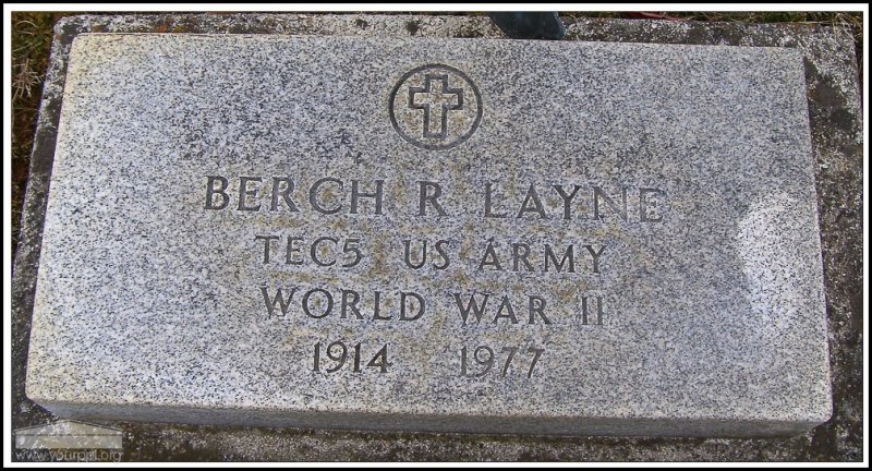 - Photo image of the footstone of Berch R. Layne in Village Cemetery located in Adams County. This cemetery is also known as Pumpkin Ridge Cemetery.