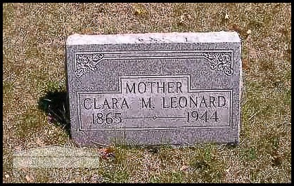- Photo image of the headstone of Clara M.Leonard in Brooks Cemetery located in Brown County.