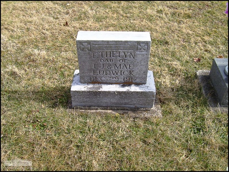 - Photo image of the headstone of Ethelyn Ludwick in Sugartree Ridge Cemetery located in Highland County.