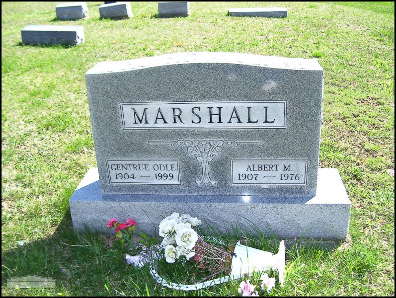 - Photo image of the headstone of Albert and Gentrue Marshall in Mt. Joy Cemetery located in Scioto County.