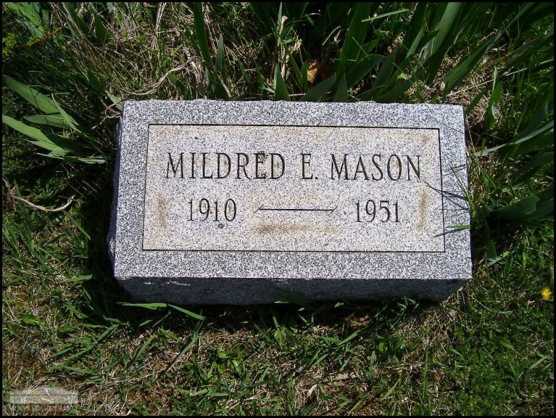 - Photo image of the headstone of Mildred E. Mason in Mt. Joy Cemetery located in Scioto County.