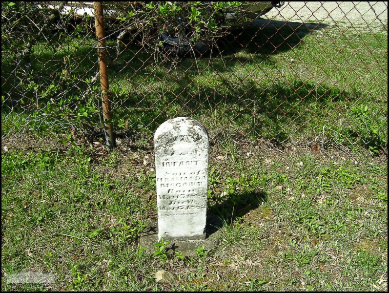 - Colorized photo image of the tombstone of an infant of the McCann family in Mount Joy Cemetery in Scioto County.