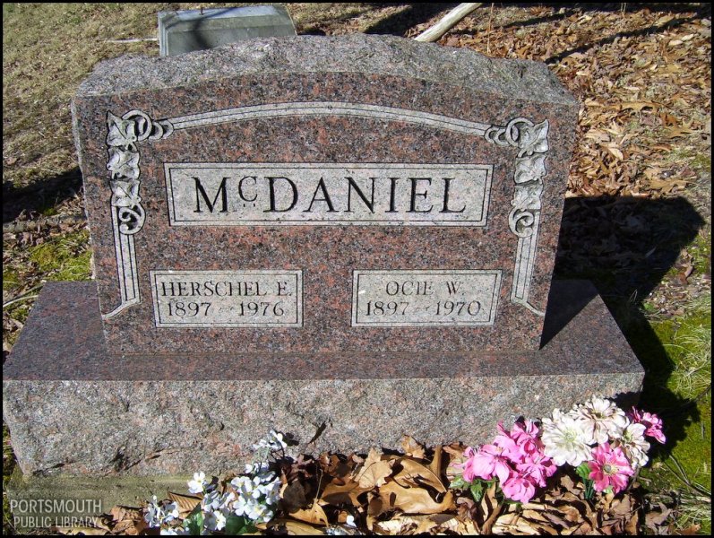 - Photo image of the headstone of Herschel and Ocie McDaniel in Otway Cemetery located in Scioto County.
