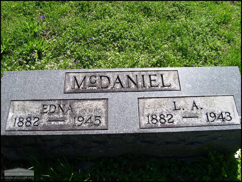 - Photo image of the headstone of L. A. and Edna McDaniel in Rushtown Cemetery located in Scioto County.