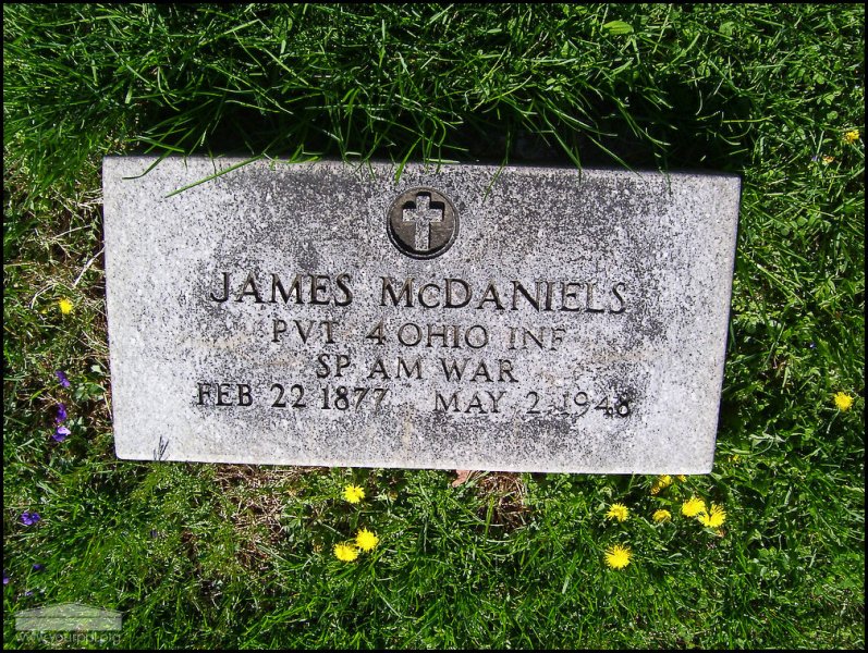 - Photo image of the headstone of James McDaniels in Rushtown Cemetery located in Scioto County.