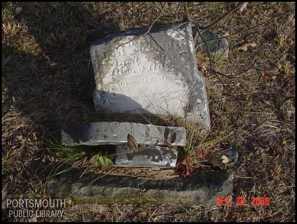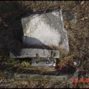 - Photo image of a broken headstone from a member of the Mead family in Mead Cemetery located in Scioto County.