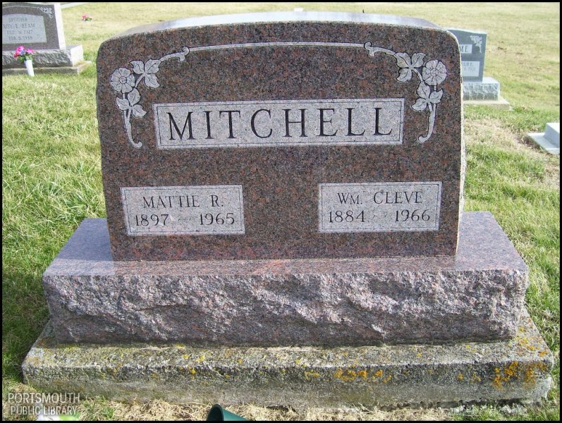 - Photo image of the headstone of William and Mattie Mitchell in Evergreen Cemetery located in Adams County.