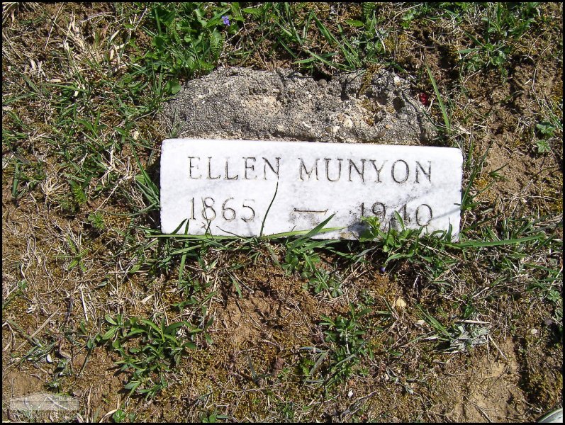 - Photo image of the headstone of Ellen Munyon in Mt. Joy Cemetery located in Scioto County.