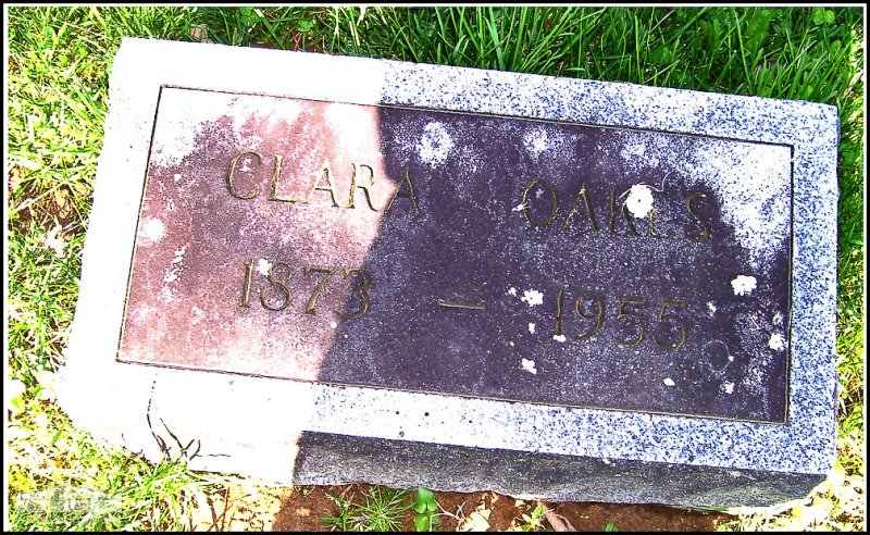 - Photo image of the headstone of Clara Oakes in Rushtown Cemetery located in Scioto County.