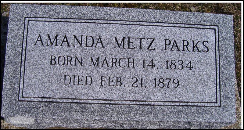 - Photo image of the headstone of Amanda Metz Parks in Prospect Cemetery located in Highland County.
