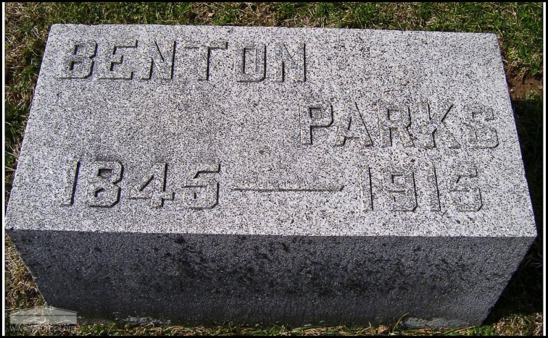 - Photo image of the headstone of Benton Parks in Prospect Cemetery located in Highland County.