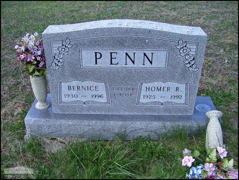 - Photo image of the headstone of Homer and Bernice Penn in Mt. Joy Cemetery in Scioto County.